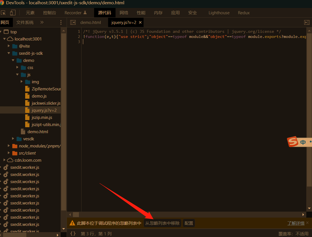 - 此时说明成功了。以后在调试时都不会进入 jq 里的代码里。